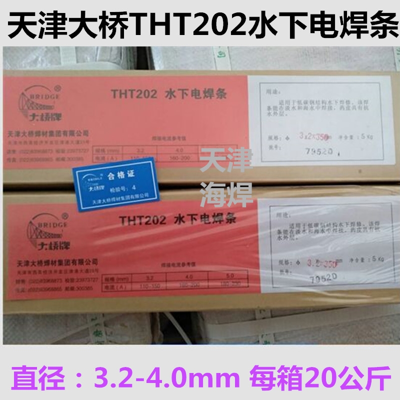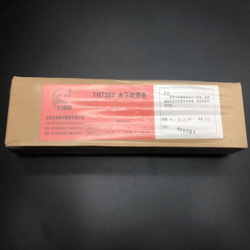 特性:THT202是一种专供水下焊接一般结构钢用的焊条。采用直流电源,可进行全位置焊接。该焊条能在淡水和海水中进行焊接,药皮具有抗水外层。