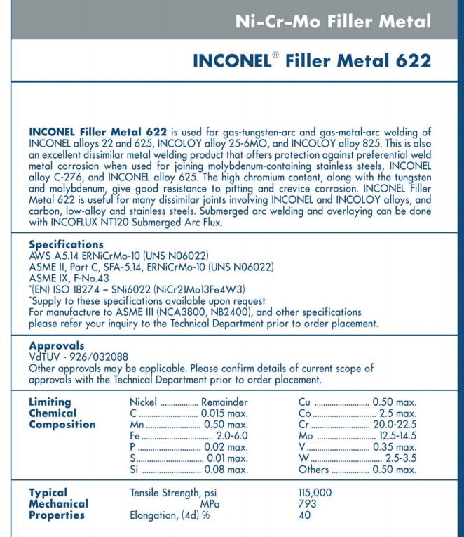 TECHALLOY 622 ERNiCrMo-10 (UNS N06022)
