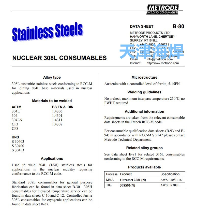 天津海焊专业销售英国曼彻特镍基合金焊条焊丝 不锈钢焊条焊丝 耐热钢焊条焊丝等品牌特种焊接材料