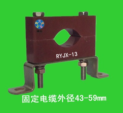 序号 名称 型号、规格 外形尺寸 宽×高×厚 适用电缆外径mm 螺杆 中心距 配用螺杆 1 融裕单孔电缆固定夹 RYJX-11 80×43×25 18-28 55 M8×80 2 融裕单孔电缆固定夹 RYJX-12 100×62×30 29-45 65 M10×100 3 融裕单孔电缆固定夹 RYJX-13 140×80×35 43-59 100 M10×130 4 融裕单孔电缆固定夹 RYJX-14 140×80×35 55-70 100 M10×140