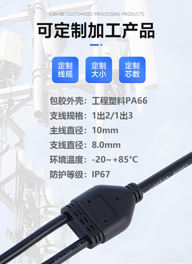 Y型一出二尼龙2芯公母对接插头座户外电源线缆暖通工业防水连接器
