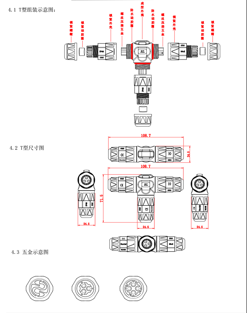 m20三通尼龙螺纹压接户外电源电缆电动车能源航空接头防水连接器