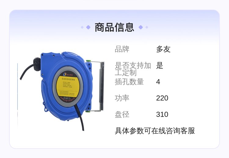 多友工业级3*1.5*20电缆自动卷线器收缩绕线盘
