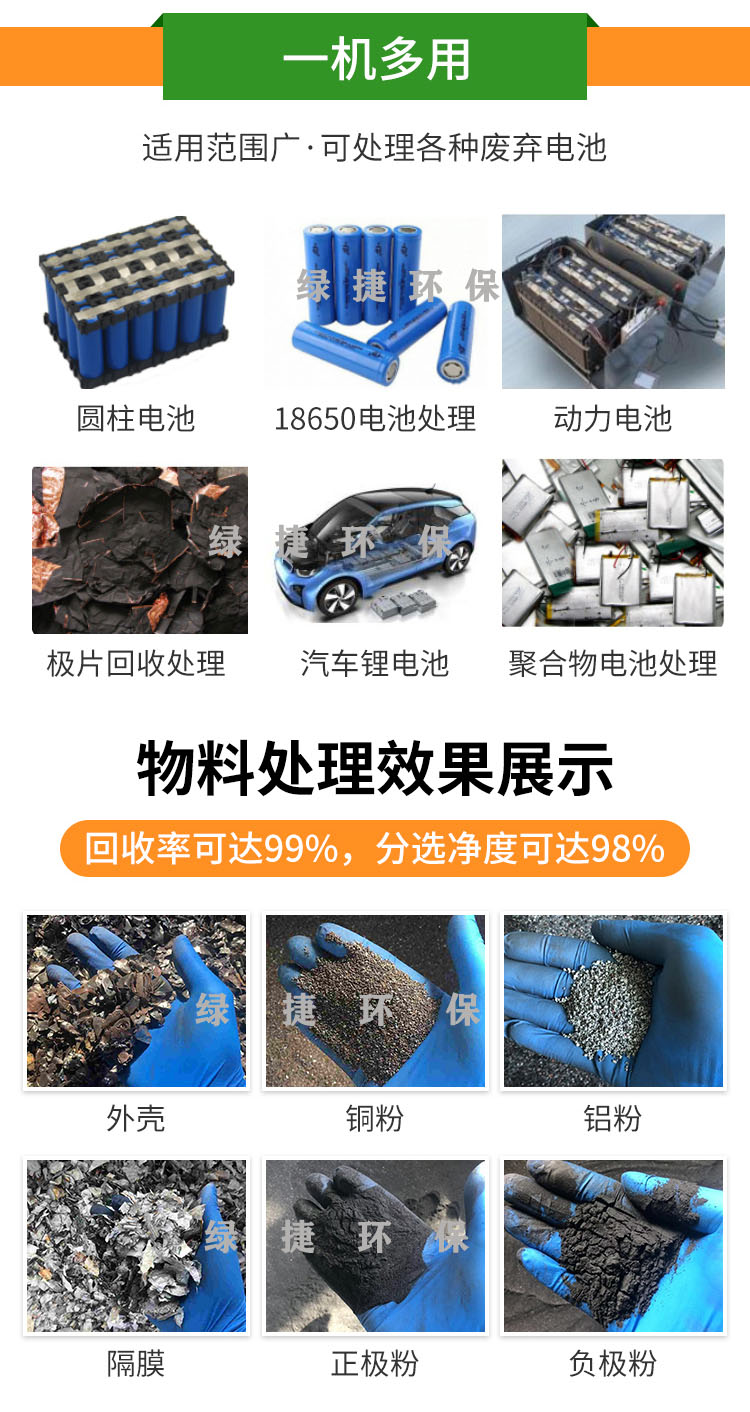 设备可处理物料 | 各种废弃锂电池以及极片 | ||