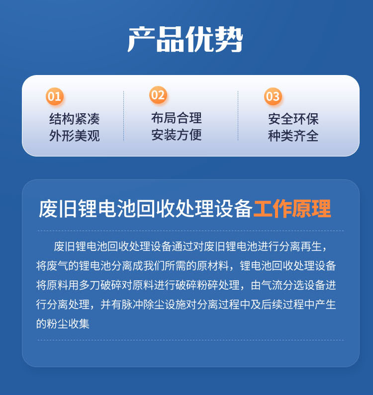 产品特点 | 适用范围广,可处理多类型不同材质外壳的锂电池 | ||