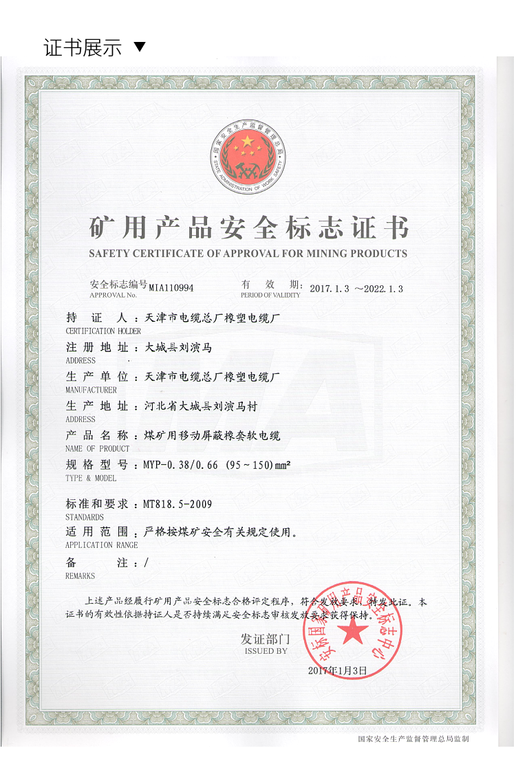 其它名称 | 矿用屏蔽橡套软电缆 | ||