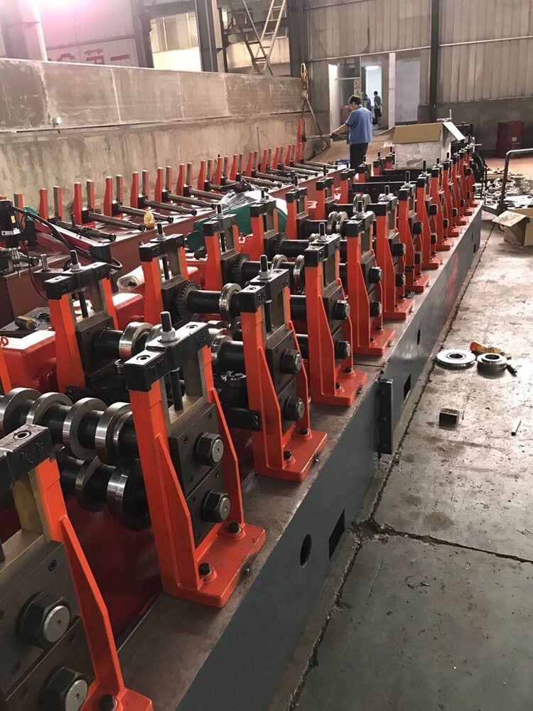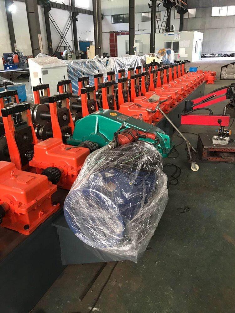 b.结构特点:切断机放在成型机后,由主机定长,切断长度可以自行设定。剪板刀具材料采用优质的刀具材料Cr12MoV,剪断口无毛边且刀具使用寿命长,更换快捷,调节剪切间隙非常方便。