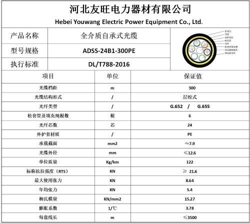 执行标准:DL/T788-2016《全介质自承式光缆》