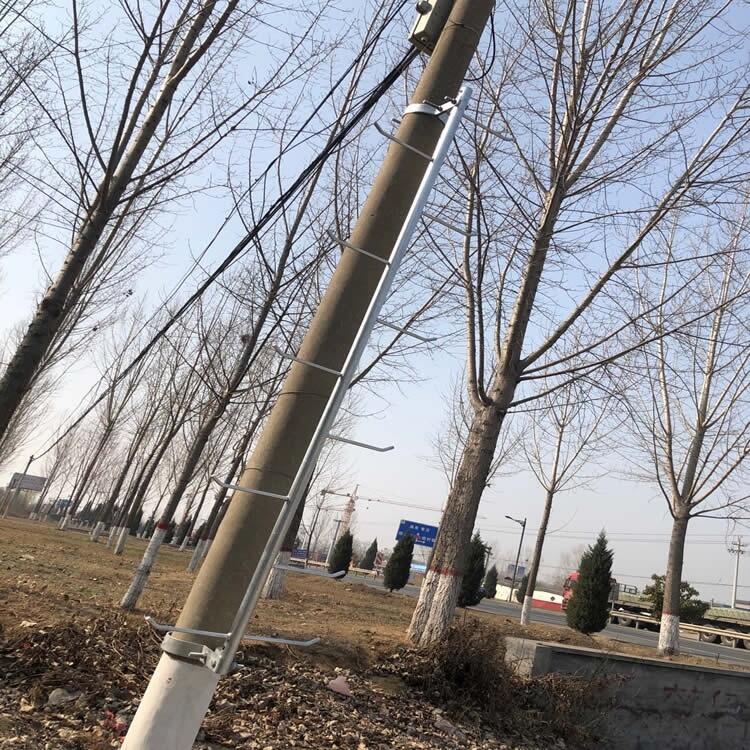 线杆爬梯介绍说明:电杆爬梯是一种安装在电杆或其他检修场所便于安装和检修的金属构件。