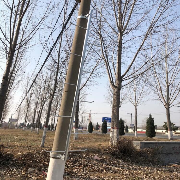 线杆爬梯介绍说明:电杆爬梯是一种安装在电杆或其他检修场所便于安装和检修的金属构件。