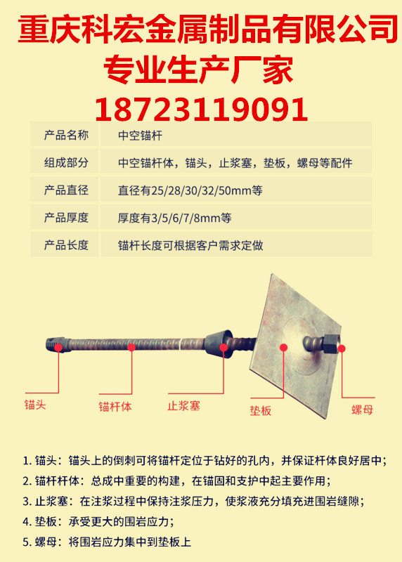 重庆镀锌中空锚杆合金中空注浆锚杆注浆钢管钢花管超前小导管钢筒