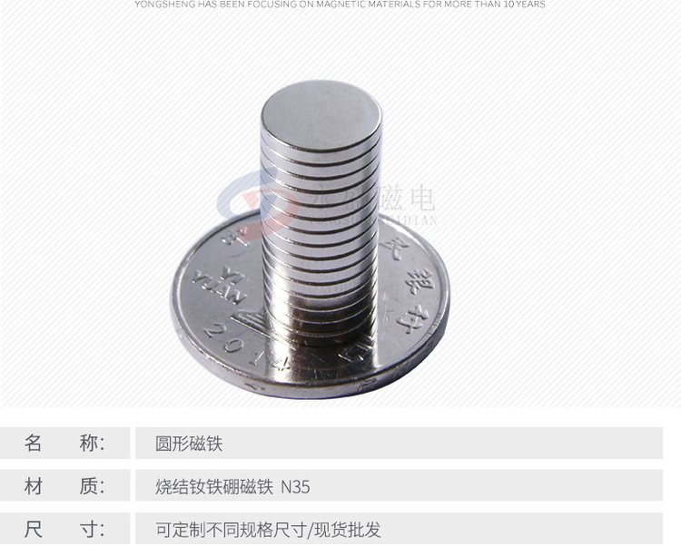 永盛厂家钕铁硼磁铁玩具箱包礼盒小圆片形超强磁永磁片可定制