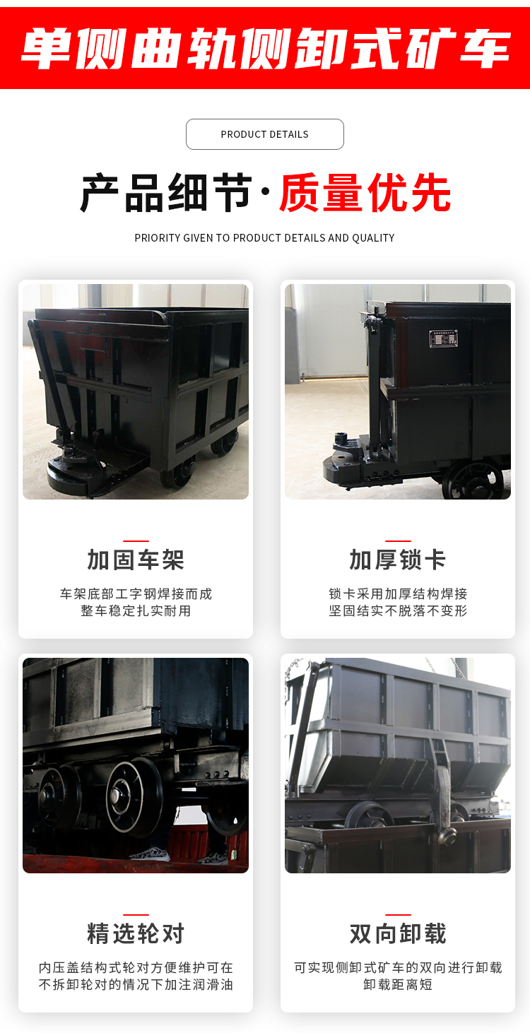 单侧曲轨侧卸式矿车容积大自动平稳卸载种类多样