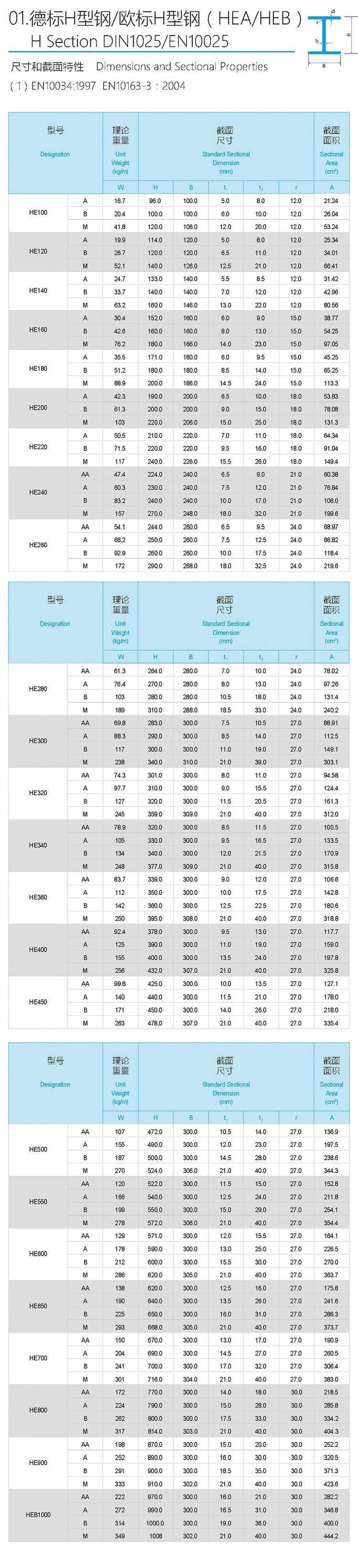 欧标H型钢HEB500欧标HEB采购尺寸规格米重表