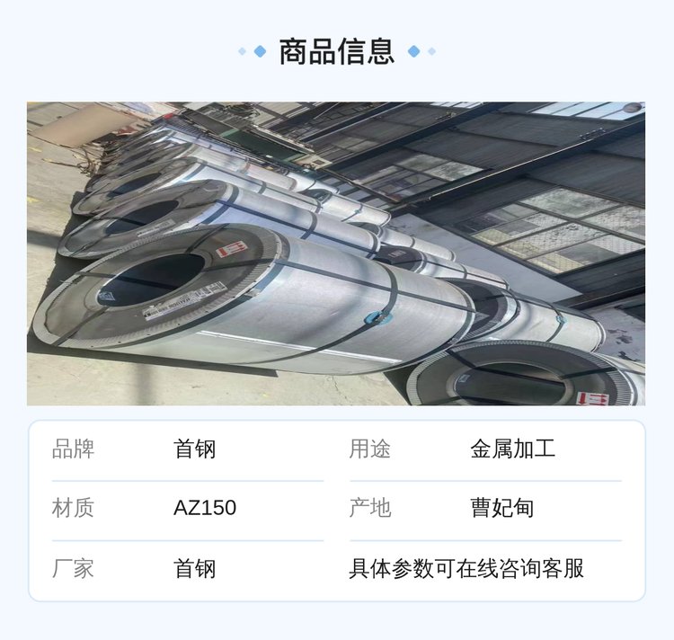 首钢镀铝锌光卷 首钢镀铝锌TDC51D 75/75本色卷 品牌 | 首钢 | ||