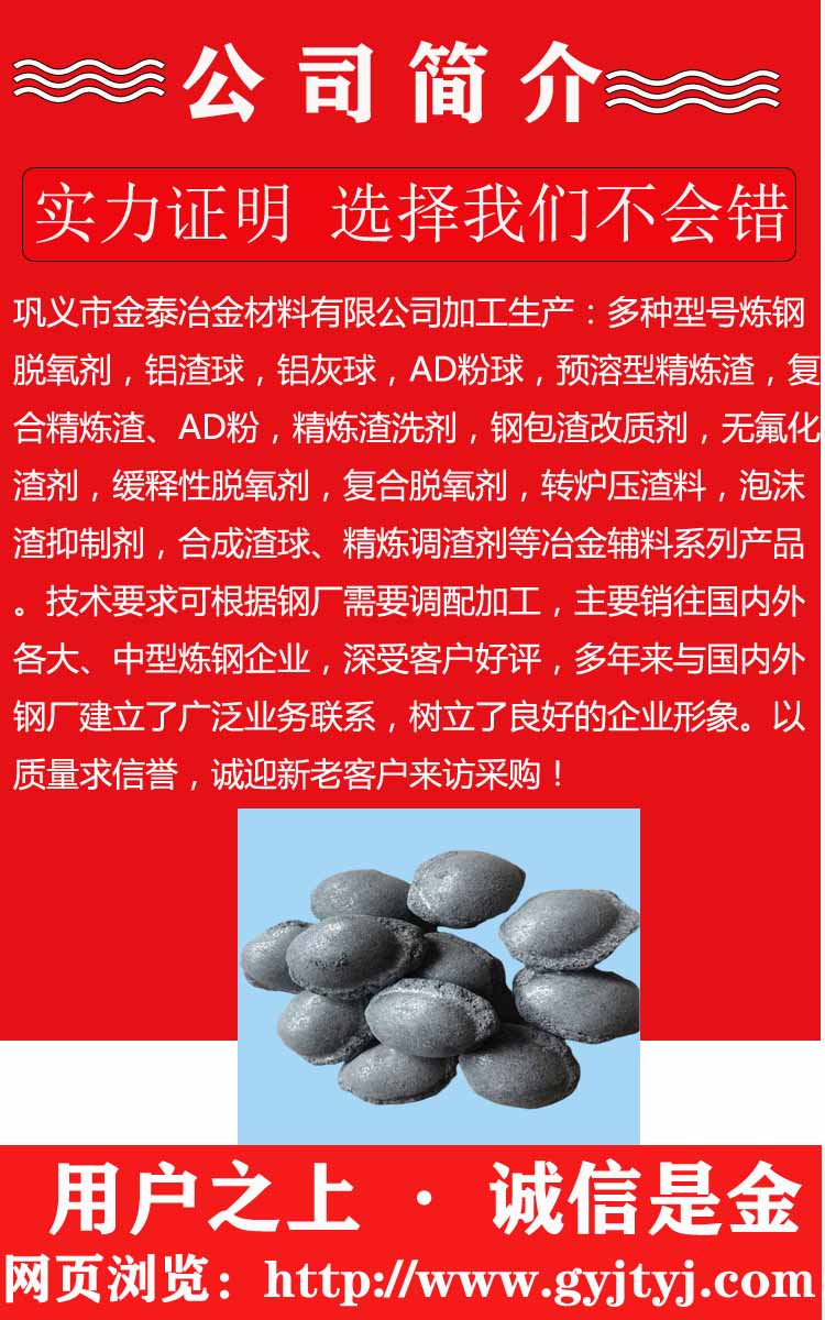 产品名称 | 炼钢脱氧合成渣球 | ||