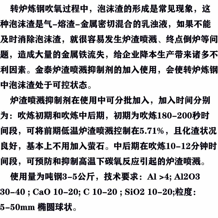 使用量 | 3.5公斤/吨钢 | ||