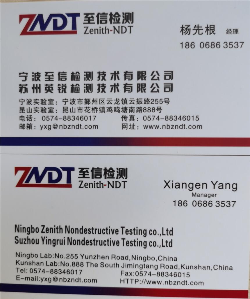 至信检测:我司是一家无损检测探伤独立第三方检测实验室,拥有CMA、CNAS、特设资质。可根据客户需要上门检测,客户也发工件到实验室进行检测。