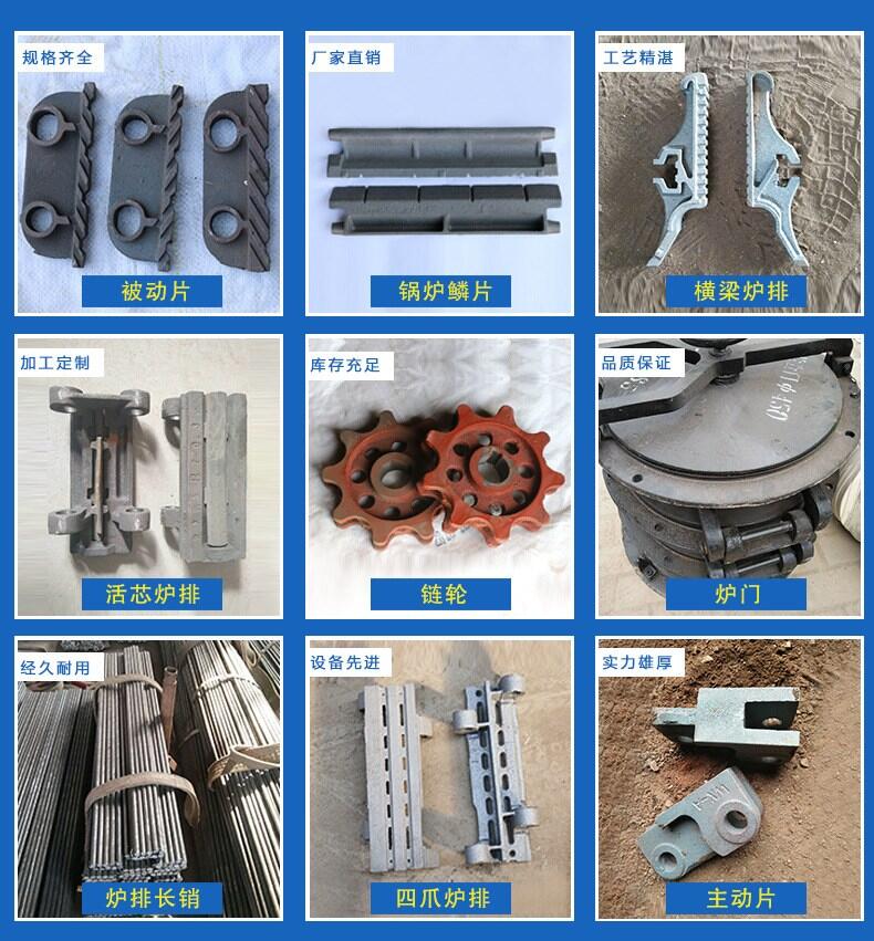 、炉排片、活芯炉排、三爪炉排、四爪炉排、锅炉鳞片炉排、锅炉炉门、