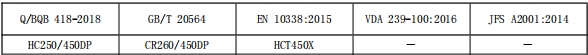 冷轧:DC03-DC06、260LA-550LA、DP450-DP1180、280VK、170P1-250P1等。