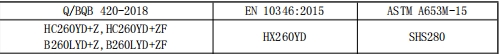 镀锌:DC53D-DC57D涂油不钝化、260LAD-500LAD、250/450DPD-700/980DPD、180YD-260YD等。
