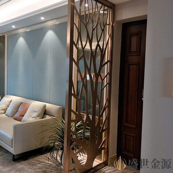 仔细留意你就会发现,如今的酒店很多都在使用不锈钢屏风作为装饰隔断,其中玫瑰金不锈钢屏风的更是用的非常多。玫瑰金不锈钢屏风作为现代时尚的代名词,精致的颜色搭配酒店环境,可以极大地提高酒店给人的第一印象。玫瑰金不锈钢屏风花格在酒店应用多的原因有很多,其中色彩上的时尚感占有有很大的比重,这种本来应用在各种金属首饰上的颜色,用在不锈钢屏风上让其变得更加具有艺术性。另外玫瑰金不锈钢屏风表面的玫瑰金色,本身也相当于一层非常薄的保护膜,可以保证在比较恶劣的情况下,使用的时间更长。