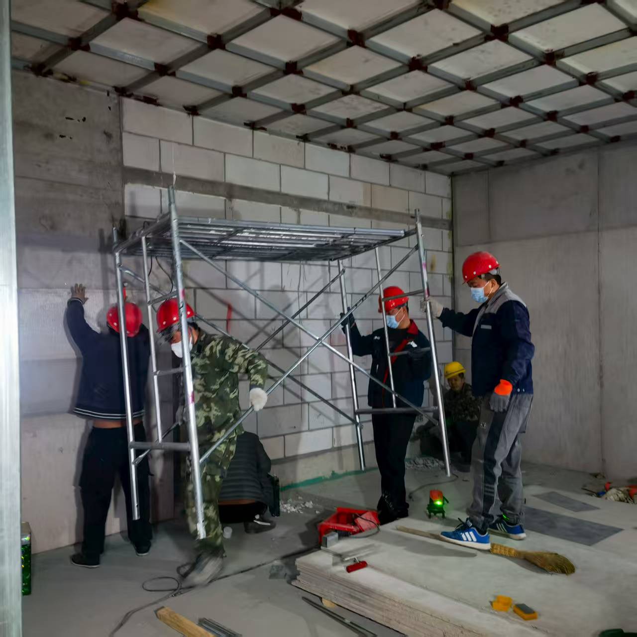 · 加固处理:为增强整体结构的安全稳定性,可以采用金属框架加固,或使用钢排枪将板材进一步固定在墙面上,排钉间距 20-30cm 见方。