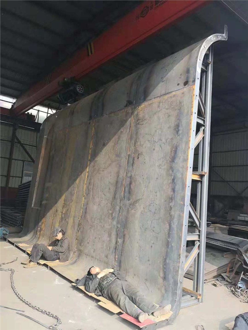 1、模扇制作;必须在有一定刚的胎模上施工,定型肋板组焊——肋板矫正检测——骨架装配定位焊——组对面板焊接,焊接成型。