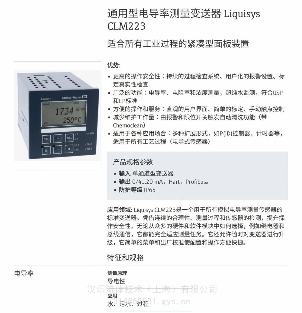 E H电导率控制器CLM223/CPM223/CCM223通用型电导率测量变送器 是否进口 | 否 | ||