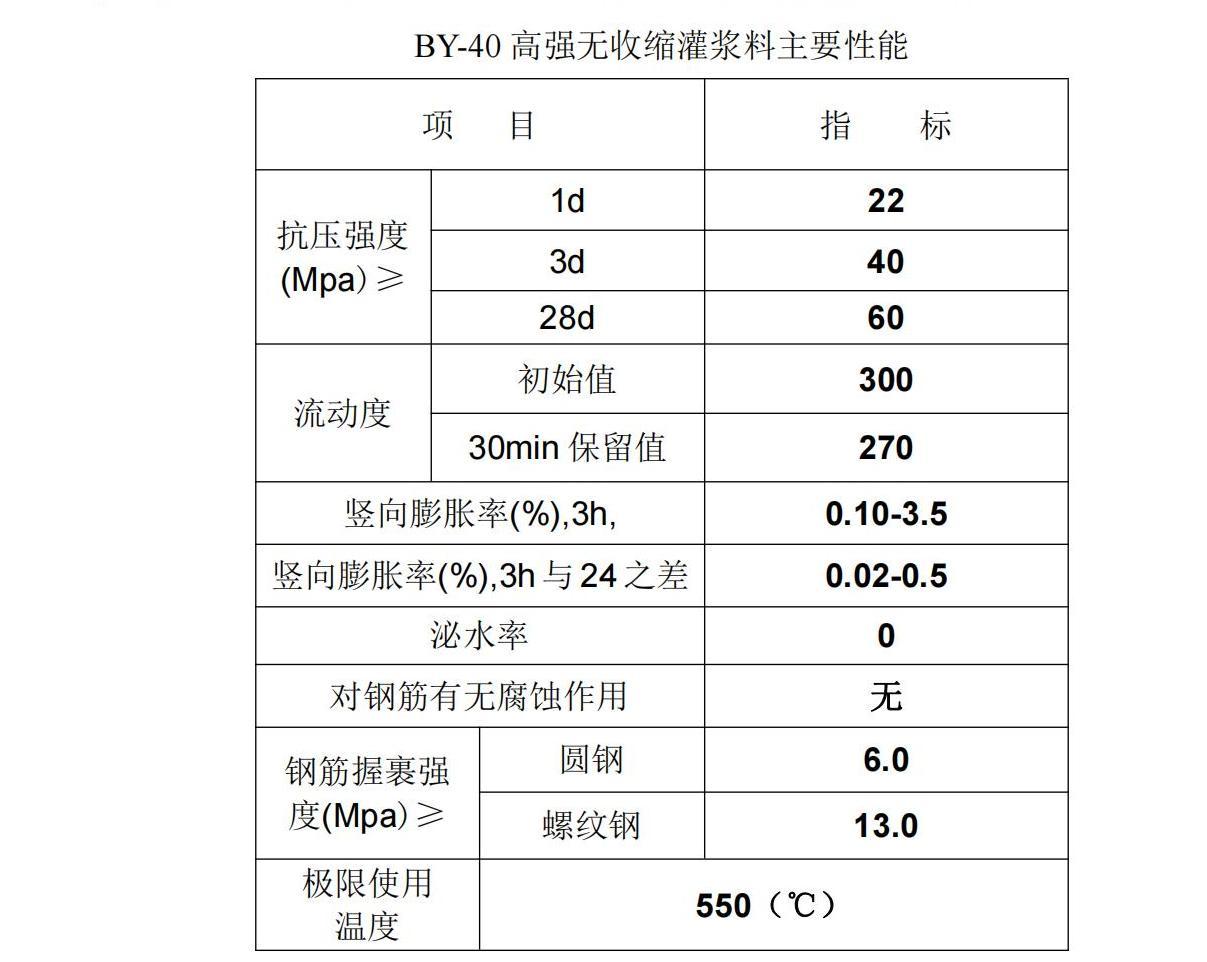 BY灌浆料BY-40/BY-60/BY-80/BY-90高强无收缩/设备基础加固料 特点 | 自流性好,快硬、早强、高强、无收缩、微膨胀;无毒、无害、耐老化 | ||