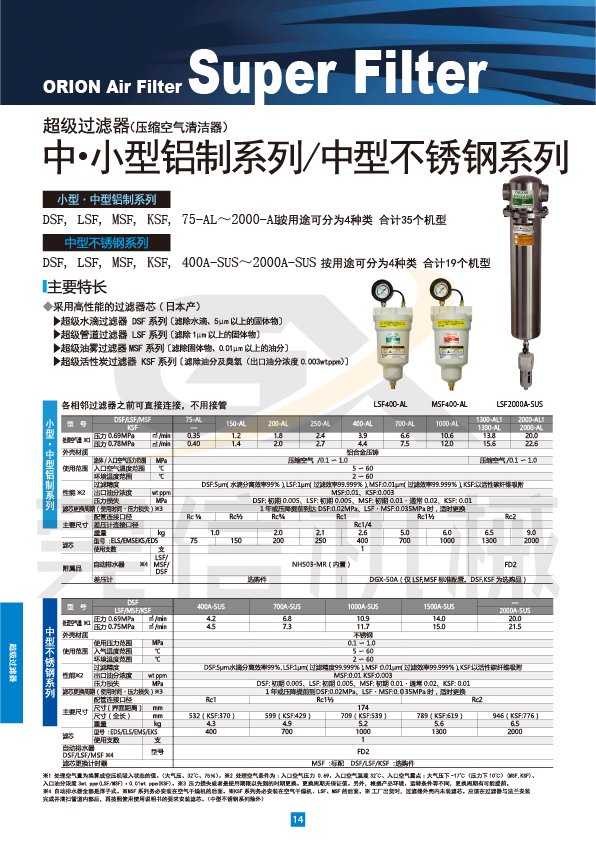 空气处理量0.32 M3/min ~ 14.9 M3/min