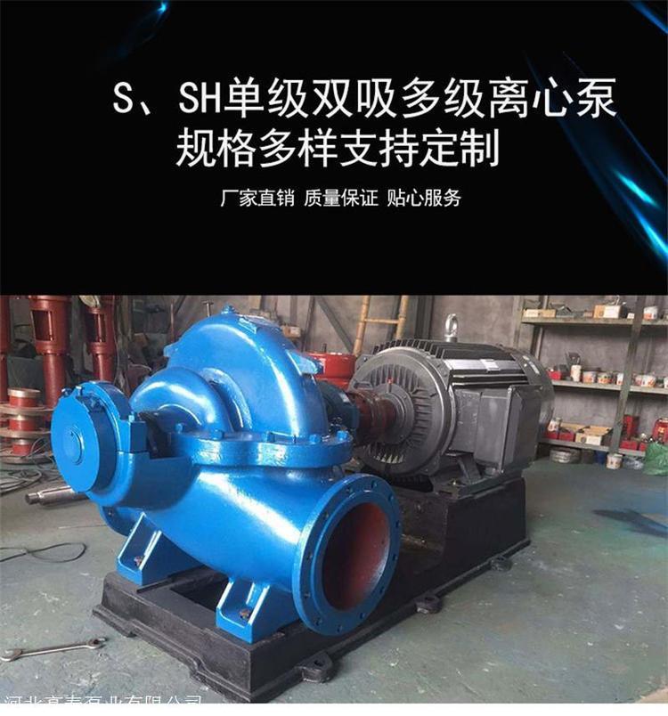 双吸泵定制与其它同类型的泵相比较具有寿命长、效率高、结构合理,运行成本低、安装及维修方便等特点,是消防、空调、化工、水处理及其它行业的理想用泵。为满足世界范围用户的不同要求,相应的泵体进出口法兰可按ANSI、PN及IS等标准选取。泵体的进出口法兰均位于下泵体,这样可以在不拆卸系统管路的情况下取出转子,维修方便部分泵体采用双流道设计,以减少径向力,从而延长机封和轴承的寿命。叶轮的水力设计采用了CFD技术,因此提高了S泵的水力效率。对叶轮进行动平衡,确保S泵的运行平稳。