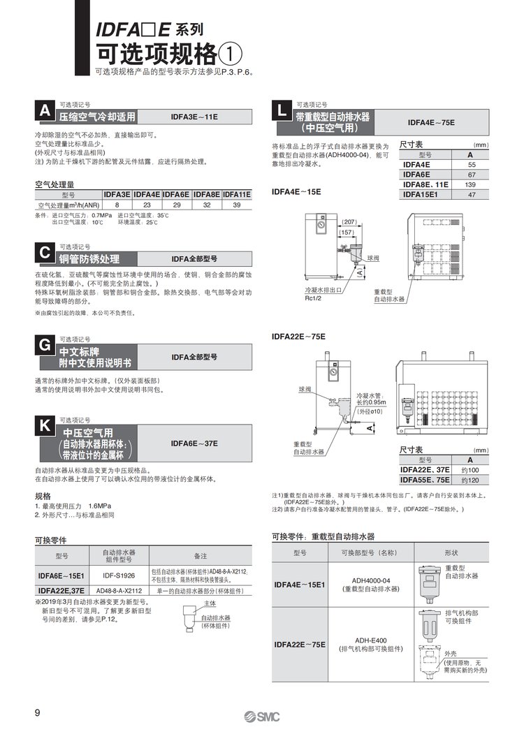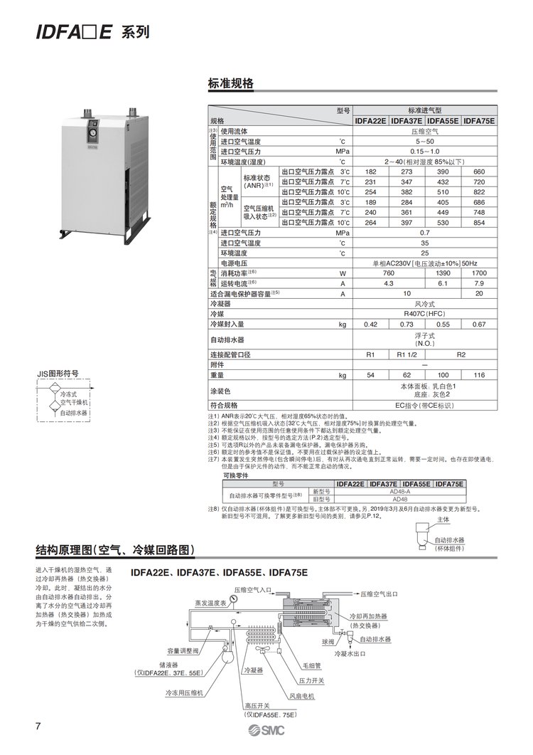 三坐标用 日本SMC冷冻式干燥机IDFA3E/4E/6E/8E/11E/15E1原装现货 品牌 | SMC | ||