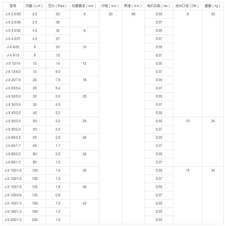 型号 | J-X | ||
