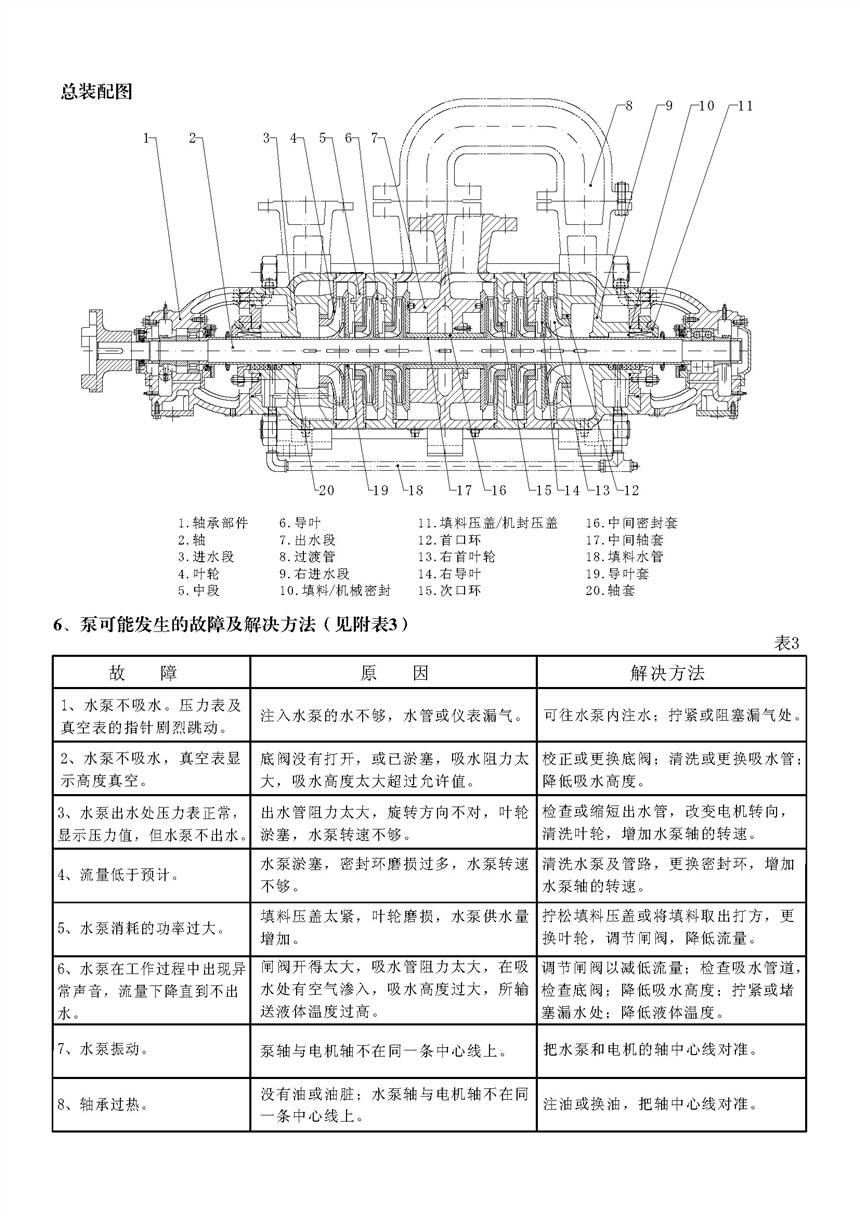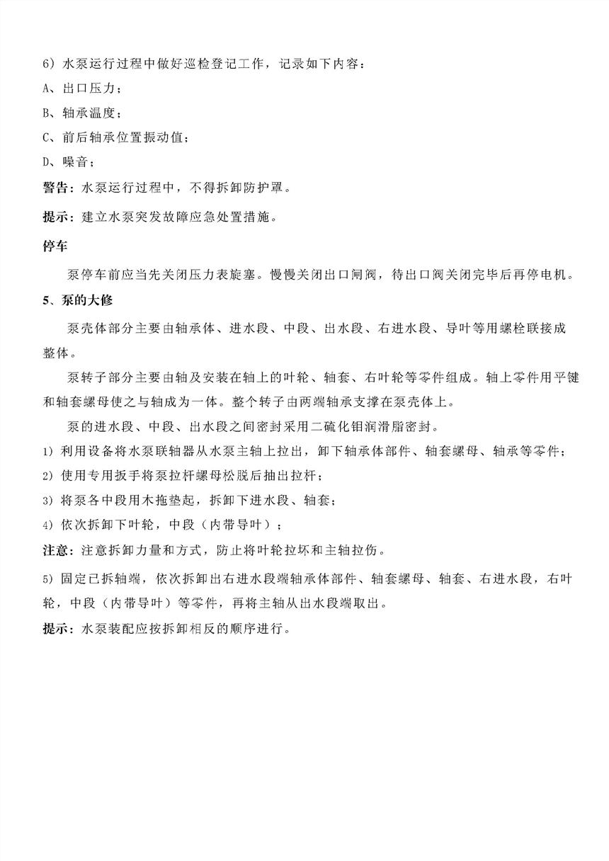 9)检修方便:产品整机采用三维设计、转子部件数控加工,严格保证了各部件的加工尺寸和加工精度;定位精确,一般技术人员只要按总装图的装配顺序和要求即可完成;完全避免了老式多级泵必须专业人员才能调整定位轴向蹿动尺寸,带给用户极大的便利。