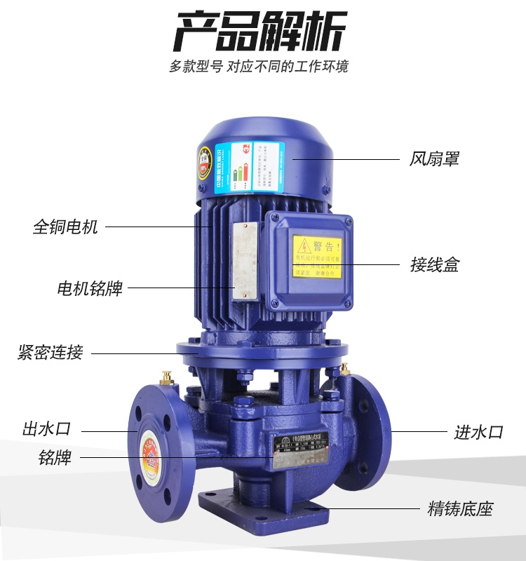 管道泵是单吸单级或多级离心泵的一种,属立式结构,因其进出口在同一直线上,且进出口口径相同,仿似一段管道,可安装在管道的任何位置故取名为管道泵(又名增压泵)。 结构特点:为单吸单级离心泵,进出口相同并在同一直线上,和轴中心线成直交,为立式泵。