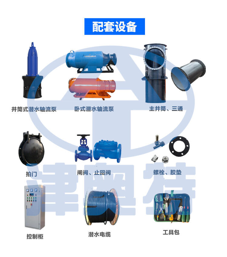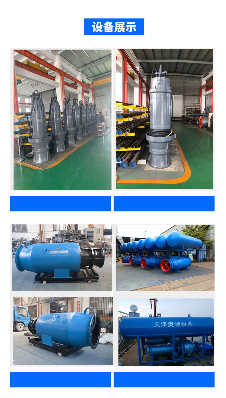 雪橇式潜水泵可供农田排灌之用,也可用于工矿船坞、城市给排水、供水工程、电站给排水之用。轴流潜水电泵适用于低扬程、大流量场合,混流潜水电泵效率高、汽蚀性能好,适用于水位变动较大及扬程要求较高的场合,输送介质为原水或轻度污水,其被输送液体温度为50℃。