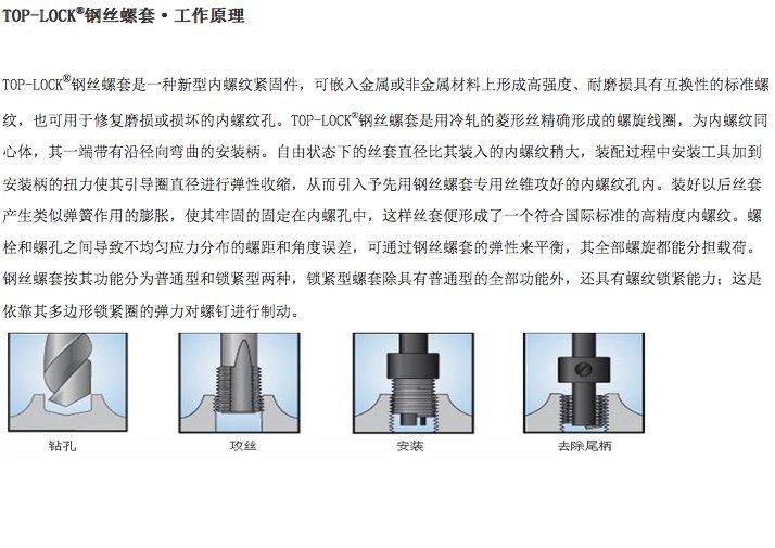 TOP-LOCK主营防松垫圈、多级顶推张紧器(超级螺栓)、钢丝螺套等多种紧固件产品。TP-LOCK全体员工承”诚信为本、客户至上”立业宗旨,在互信互利基础上开发国内外市场。公司产品顺利通过了TS16949、国检检测中心、ISO19001国际质量体系认证、欧盟ROHS环保体系认证等。TOP-LOCK防松·紧固系统承蒙广大客户的支持和公司全体员工的共同努力,公司近年来得到了快速发展。TOP-LOCK品牌得到用户信任和认可。