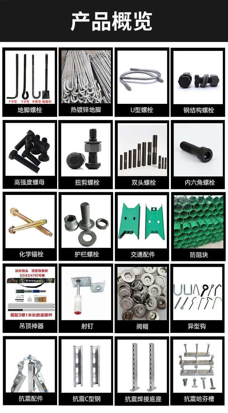 喉箍/波珠螺丝/脚杯/U型螺栓/马车螺栓/点焊螺丝/标牌铆钉/组合螺丝/松不胶螺丝等众多系列。