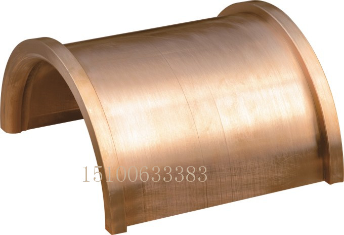 铜瓦是滑动轴承和轴接触的部分,非常光滑,一般用青铜、减摩合金等耐磨材料制成,在特殊情况下,可以用木材、塑料或橡皮制成。也叫“轴衬”,形状为瓦状的半圆柱面。滑动轴承工作时,铜瓦与转轴之间要求有一层很薄的油膜起润滑作用。锡青铜是铸造收缩率最小的有色金属合金,可用来生产形状复杂、轮廓清晰、气密性要求不高的铸件。锡青铜在大气、海水、淡水和蒸汽中十分耐蚀,广泛用于蒸汽锅炉和海船零件。含磷锡青铜具有良好的力学性能,可用作高精密工作母机的耐磨零件和弹性零件。我厂生产的铜瓦广泛应用于锻压设备、轧钢设备、冶金设备、发电机组、回转窑设备、生产线设备、机械压力机、液压机、螺旋压力机和平锻机,以及开卷机、矫正机、剪切机、锻造操作机等。