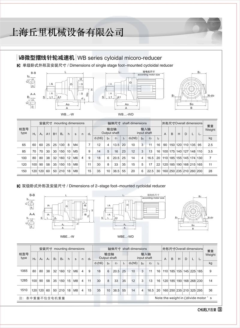 WB150,减速比分别有:9、11、17、23、29、35、43、59、71、87; ⒉双级