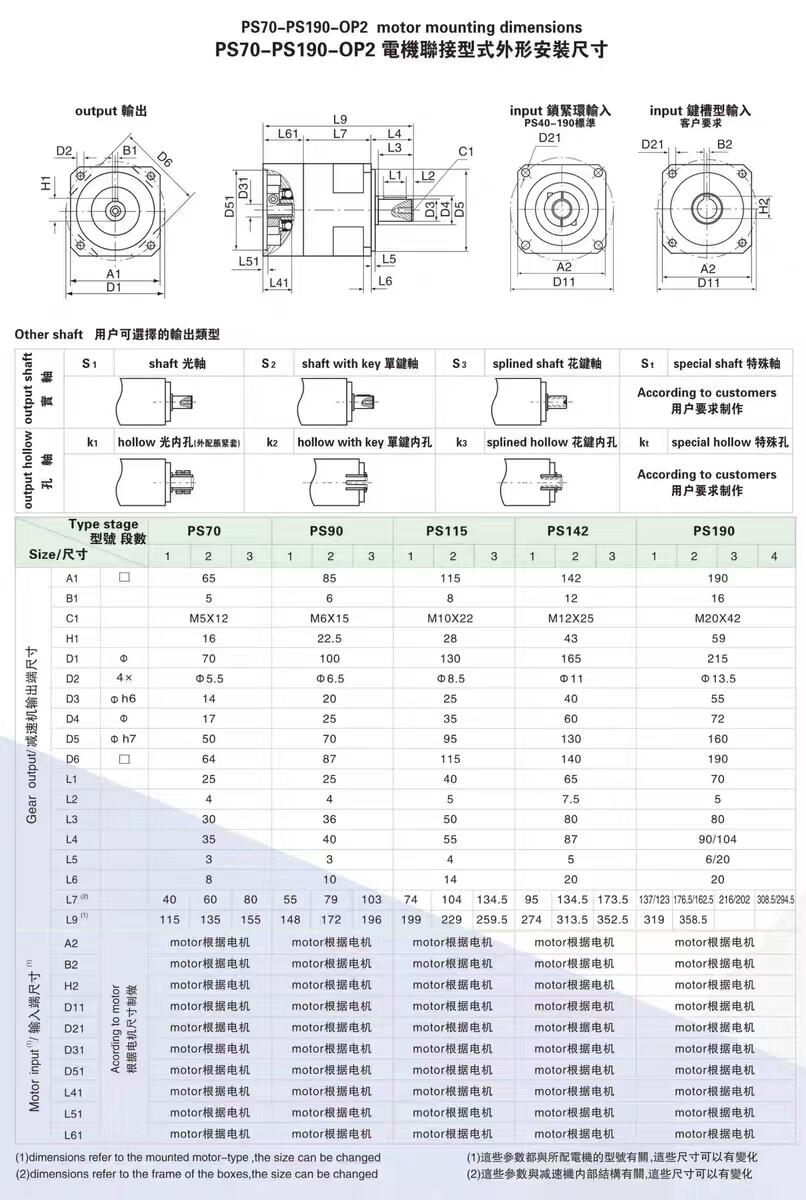 PS142 190行星减速机器120PF160输出尺寸同130 150 180伺服电机