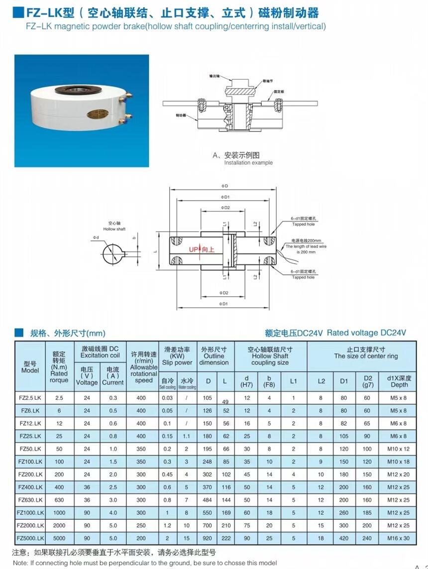 立式垂直轴磁粉制动器 24V电磁粉末刹车器张力控制器 空心轴中空