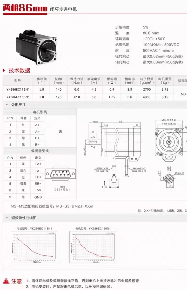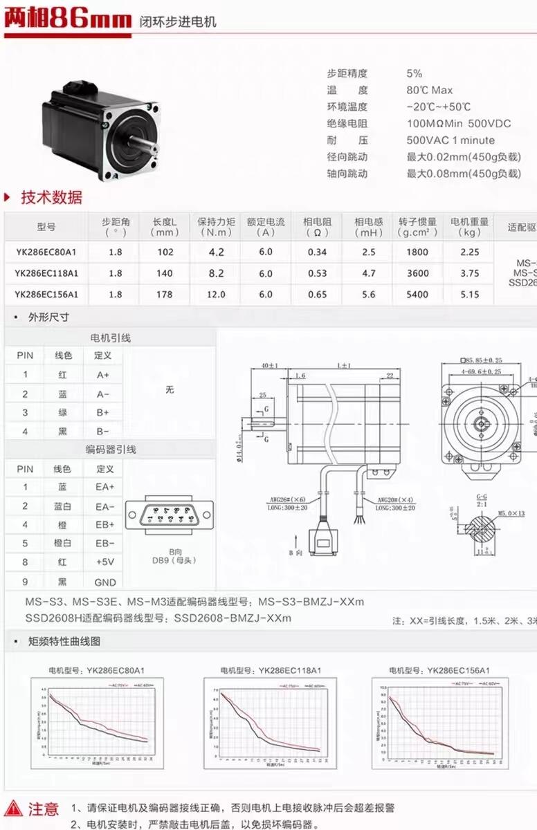 研控86mm步进电机YK86HB65-04A/YK86HB80-04A