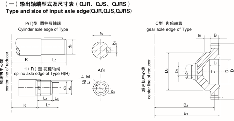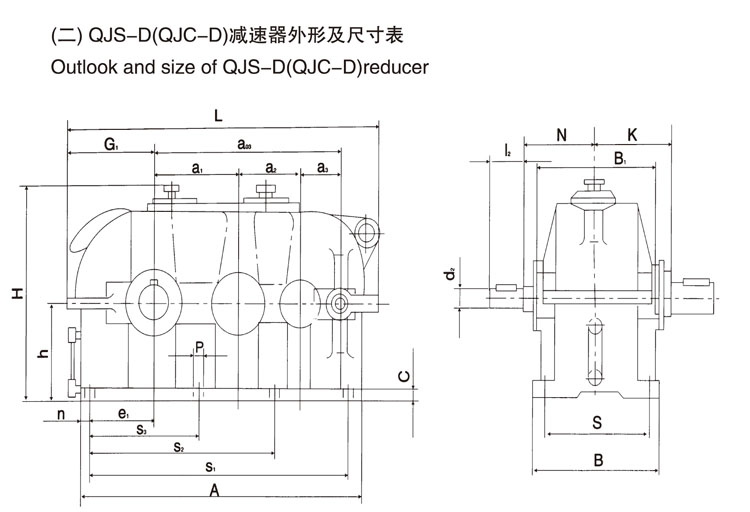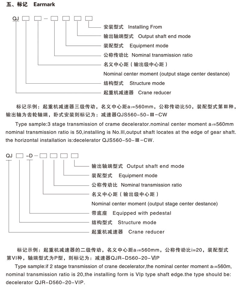 QJS-D500-63-IVP齿轮减速机为完整型事情,500为末级中心距,63为传动比,IV为4号装配型式,P为出轴型式为圆柱轴伸。