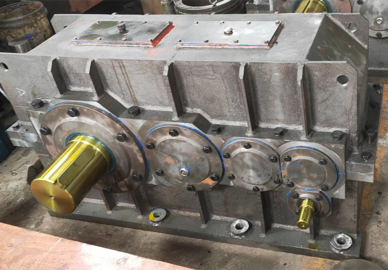 ZFY400硬齿面减速机,箱体为HT200,壁厚,光滑,轴承座整体铸造,整体性好,底板厚实,承载扭力大,传动比范围从100-500之间,多级传动,传动比大,输出转速慢,属于慢速减速机,输出转矩大。