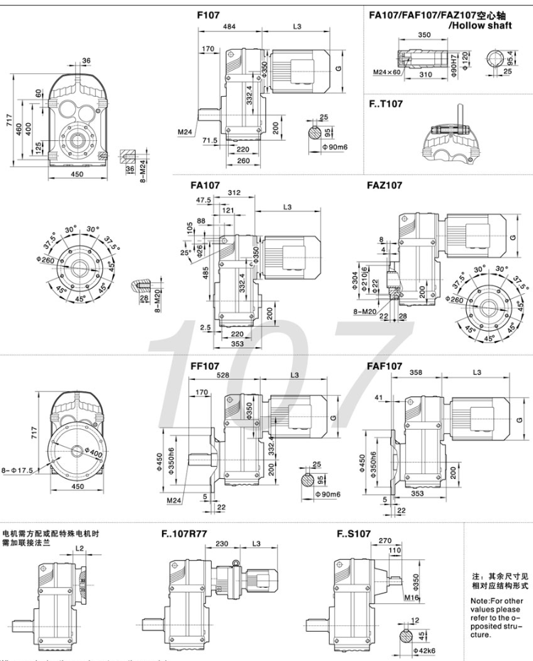 RF107为减速电机一体式,结构紧凑,承载力大,密封性好,耐腐蚀,可在各种潮湿,恶劣环境中使用。泰兴沃德减速机批量生产,交货迅速,欢迎咨询!