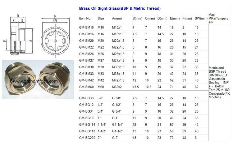 供应M26X1.5 铝合金油镜/液面视镜/六角铜铝油箱视镜 GM-BM26 品牌 GrandMFG