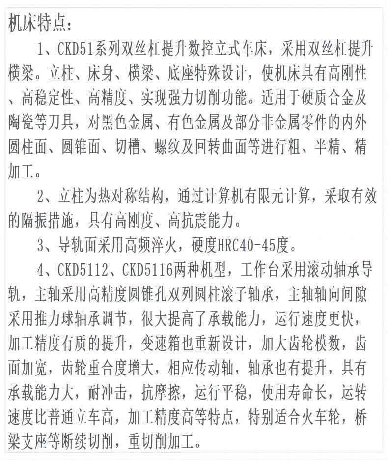 大连庄重CKD51系列双丝杠提升数控立式车床