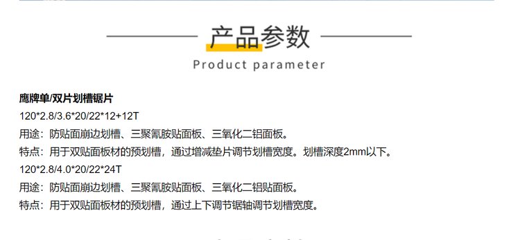 产品名称 | 鹰牌单/双片划槽锯片 | ||